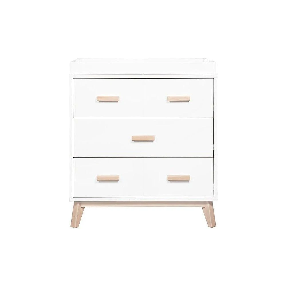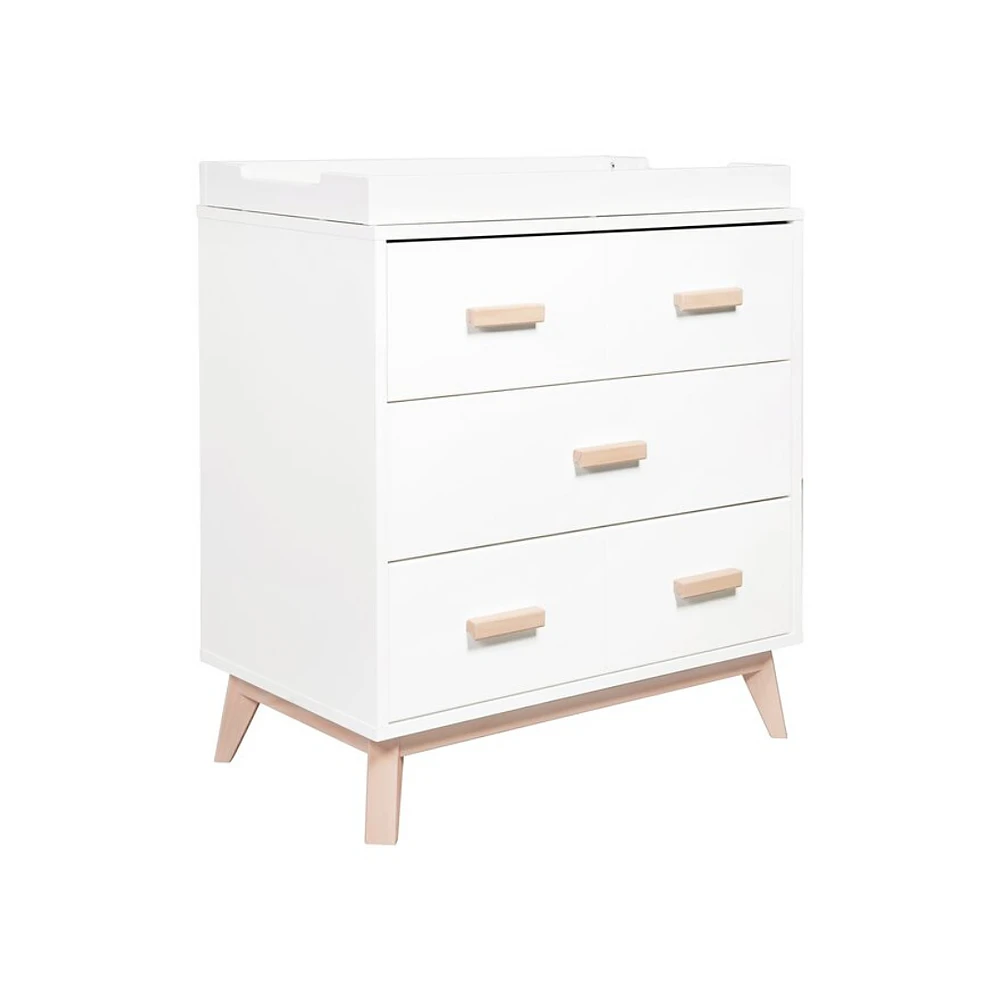 The Scoot 3-Drawer Changer Dresser is mid-century modern style defined. The perfect accompaniment to your Scoot crib, the Scoot 3-Drawer Changer Dresser highlights matching tapered feet and two-toned or solid color detailing. With three drawers and an included removable changing tray, this sturdy unit provides a range of practical storage possibilities to suit all of mom’s needs.
