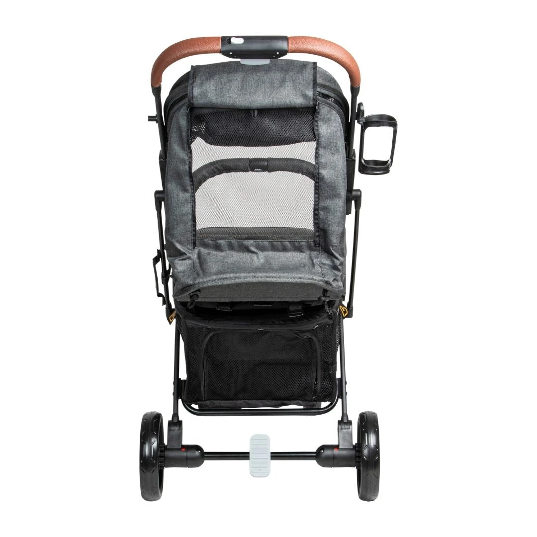 - Comes with footmuff, carry handle, cup holder and luggage-like handle