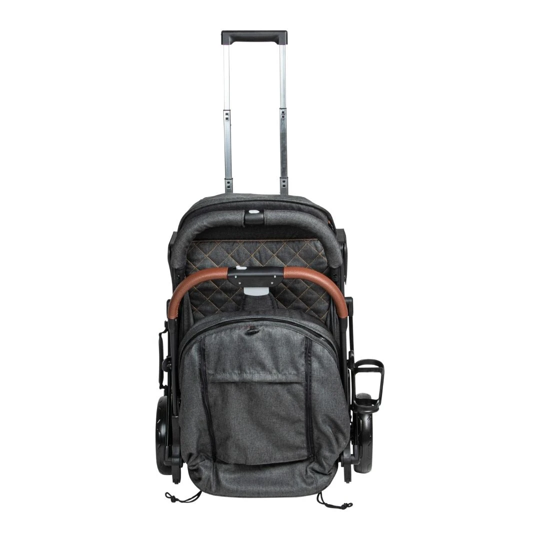 The Lux stroller also comes thoughtfully equipped with a luxurious high-quality canopy (which can be unzipped to be extended) that boasts UV protection to shelter your baby from UV radiation and the heat from harmful sun rays. There is also a giant peek-a-boo window at the back for increased ventilation if needed. For all its substance, Bonbijou Lux also has its stylish side and comes with a luggage-like handle for you to pull it about when not in use.