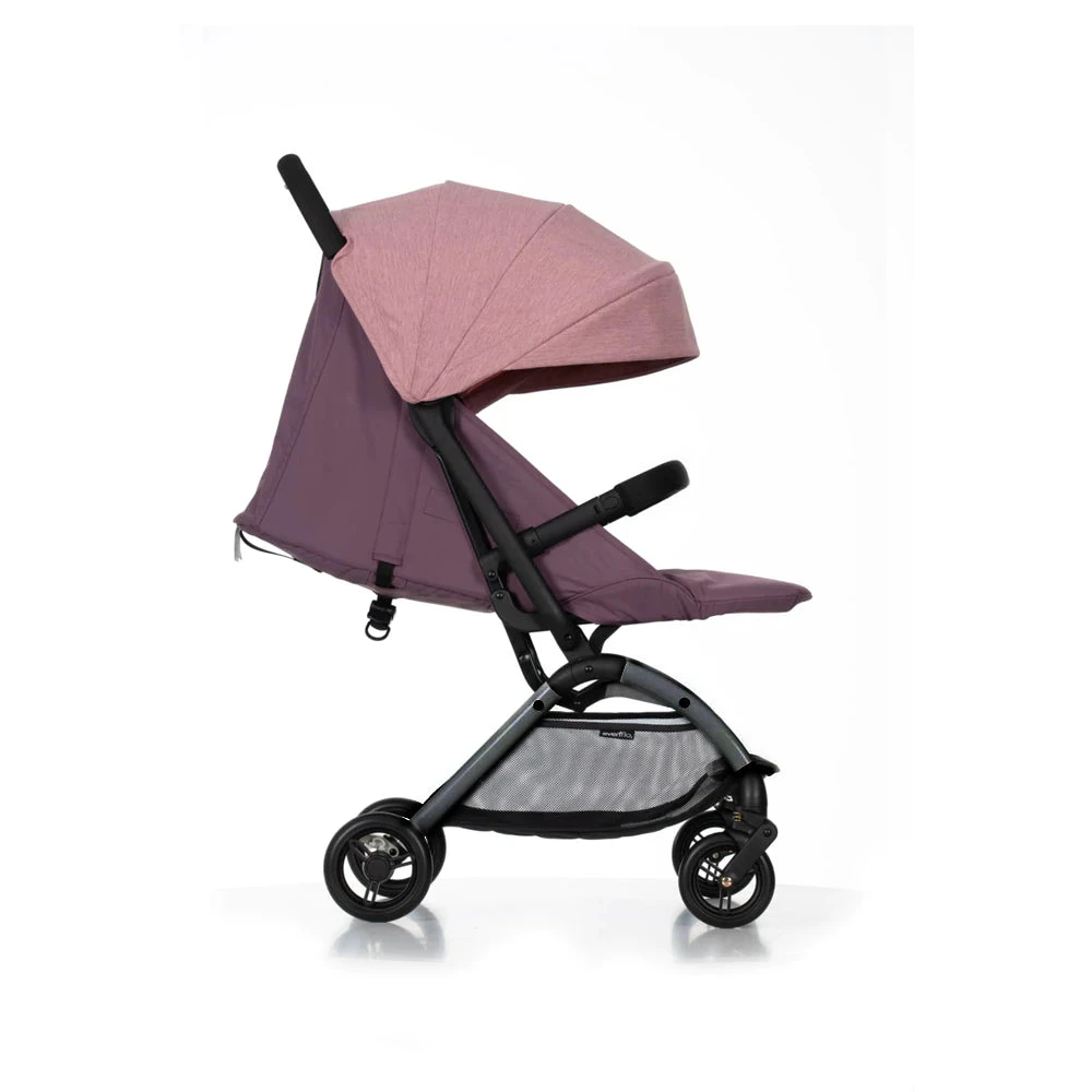 The Evenflo D650E™ Wim Lightweight Compact Strollerfeatures an unique, compact fold that is quick to use and fits into smaller spaces, making it perfect for outings and day trips. Simply lift the in-seat handle with one hand. The folded stroller conveniently self stand to simplify getting it in and out of the vehicle.
