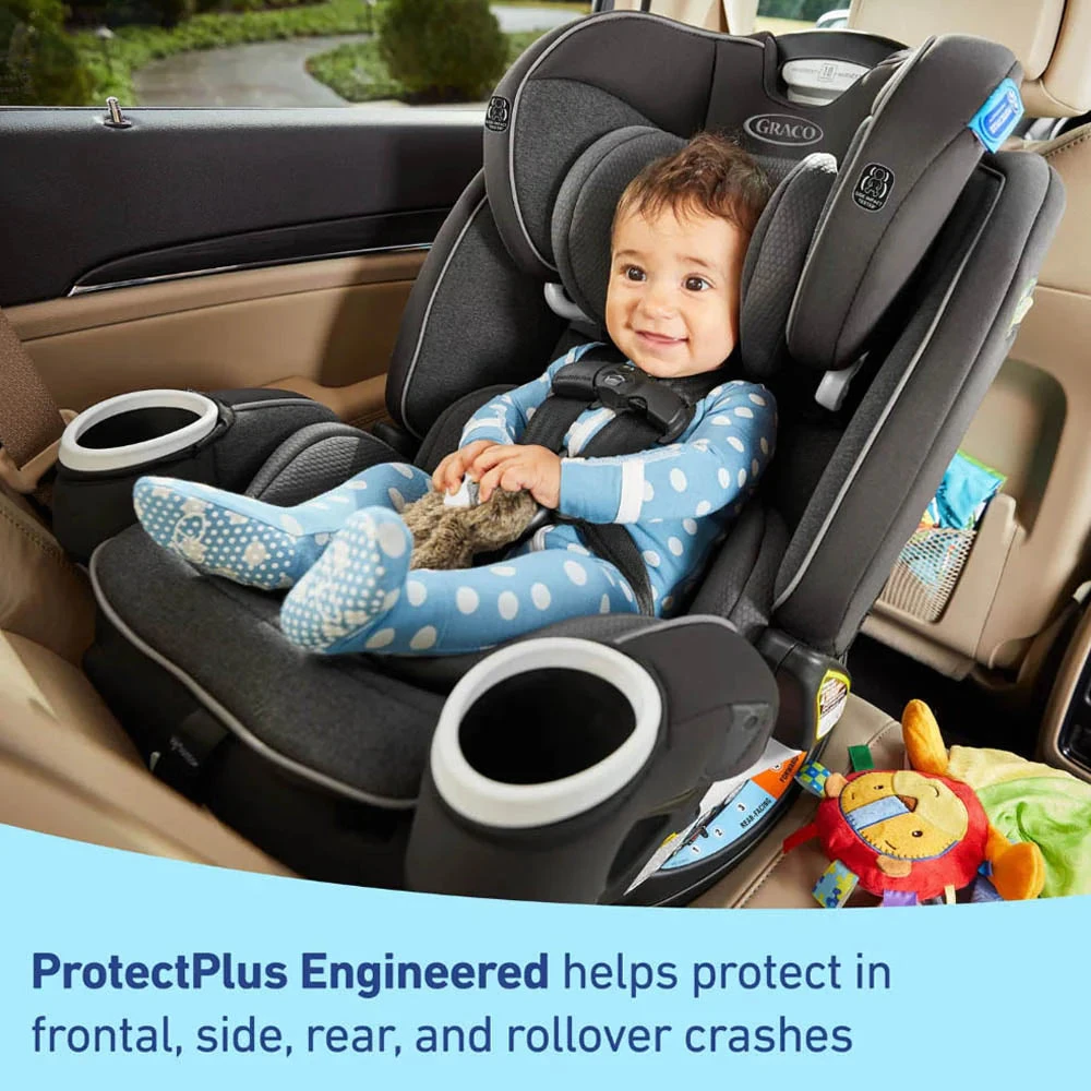 The car seat is Graco® ProtectPlus Engineered™ to help protect in frontal, side, rear, and rollover crashes.