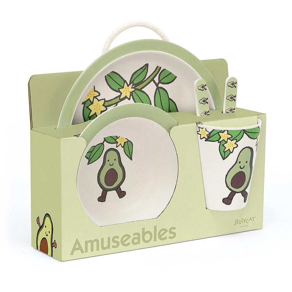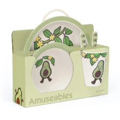 Dinner time has never felt so refreshing! Time for the little ones to eat their greens with our beloved Amuseable Avocado. This Bamboo set comes with a plate, bowl, cup, fork and spoon and is complete with illustrations in the form of your favourite Amusea