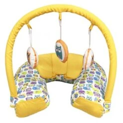 comfortably on the pillow with the head on the inclined head support. They feel more comfortable and cooling while parent get a relief of the back strain – thanks to the back support of the pillow. When breast feeding or bottle feeding, it feels more comfortable on the back now! No more back strains and aching anymore as nursing is breeze. With the baby lying on their back, attach the toy bar and transforms the pillow into a fun-time play gym! The hanging toys are sure to amuse and entertain your child while you get a little rest off your hands. No one will out-grow the pillow as it serves as a great supporting pillow for all in the family! Fits any size waist and is fully adjustable to anyone’s perfect fit!