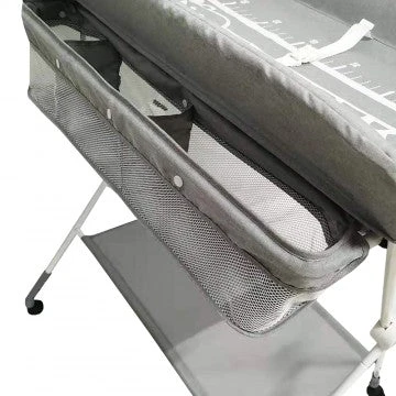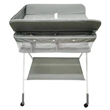 This station offers parents the comfort and practicality of an elevated changing station, dedicated only to baby time. Keep towels, nappies, toys and all other supplies neatly organized and within easy reach in the caddy compartments or lower storage space below the changing. The changing pad is soft with height measuring for your baby grow, it can be easily cleaned with soap and water. The stylish stand allows for it to be folded & move around with wheel/stopper. Our changing station is designed to allow an infant to lie down while bathing – Foldable for easy storage.