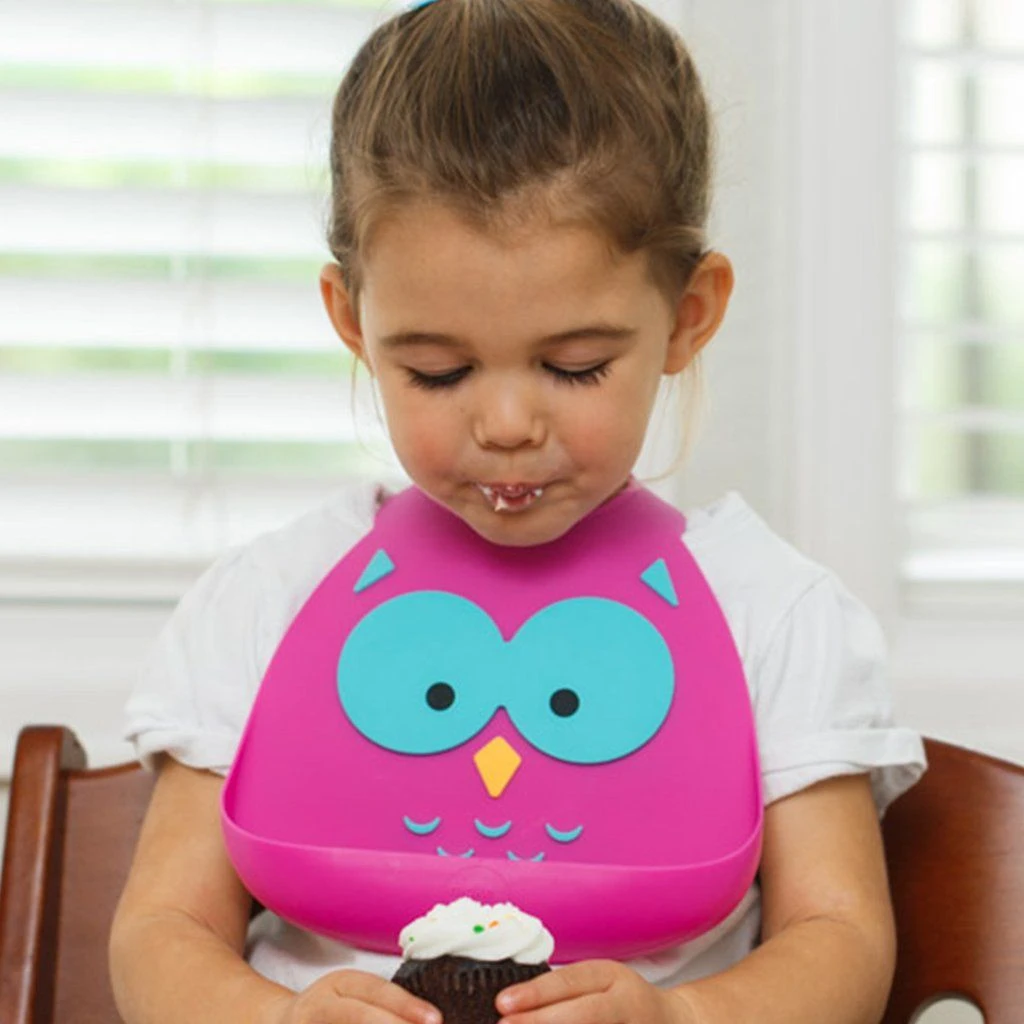 built-in crumb catcher. The Baby bib has an adjustable strap that fits sizes 6 months to 3 years old.