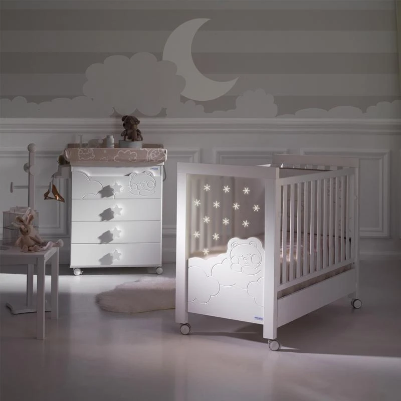 The Dolce Luce Babybath has star-shaped central handles, which go perfectly with the design of the matching cot.