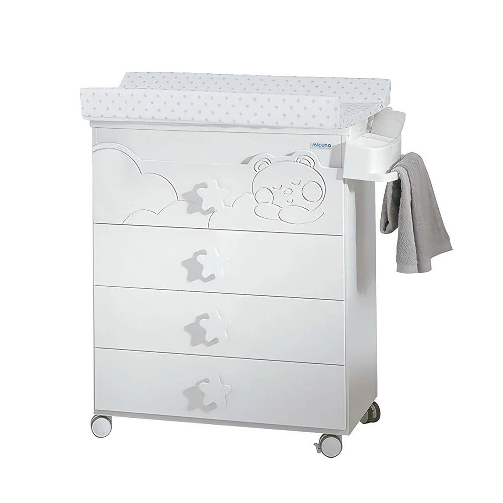 Thanks to its optional fixed leg add-on, it can be transformed into a practical dresser by removing the wheels, the basin and the changing table.