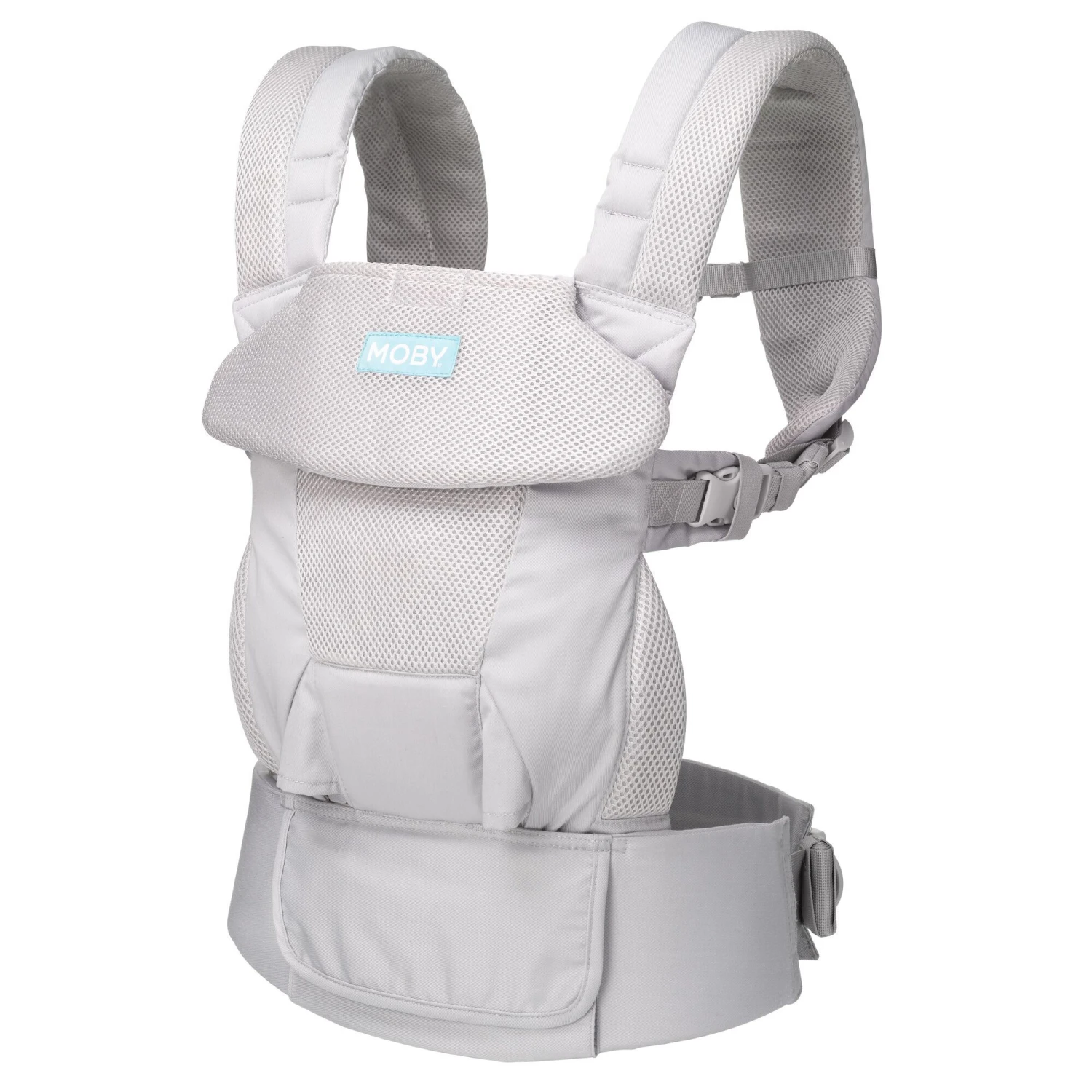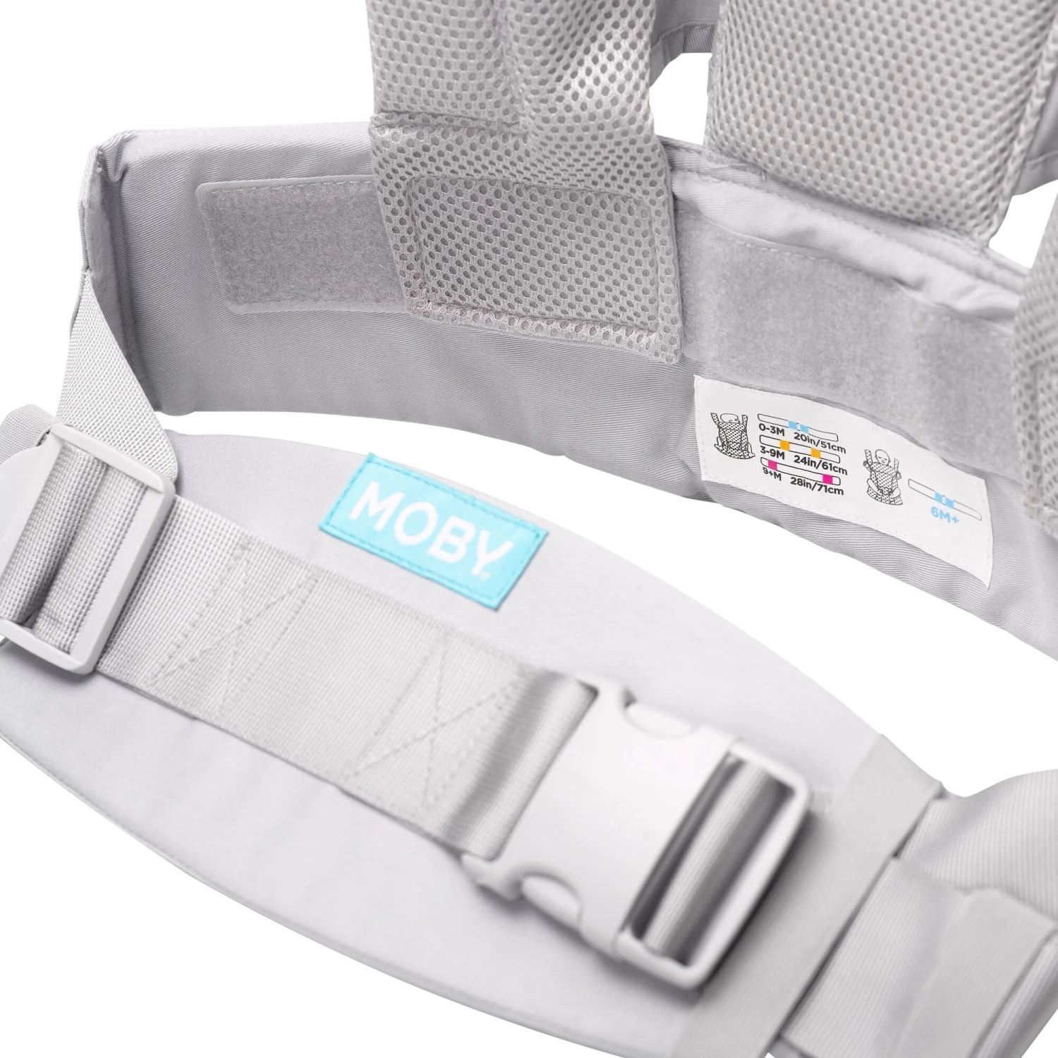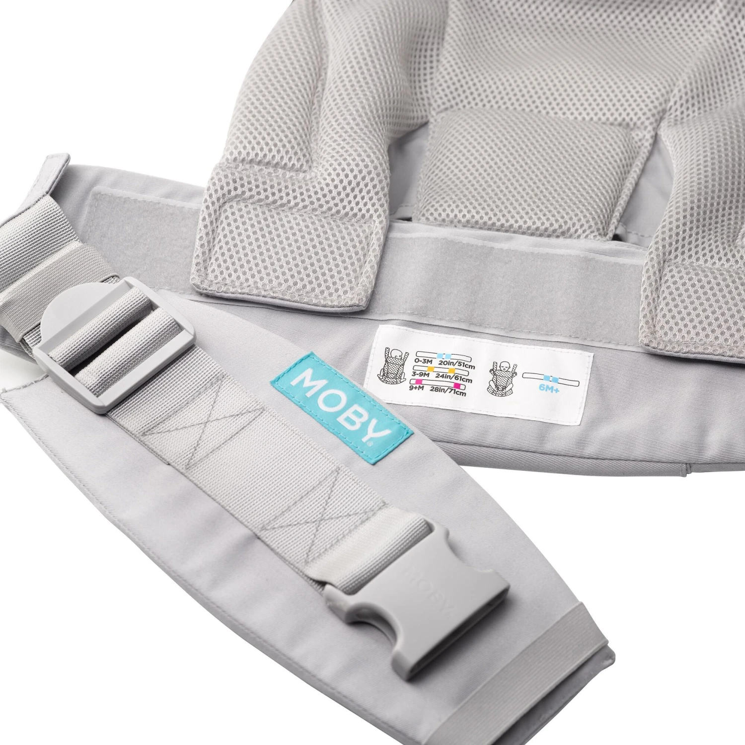 - Breathable mesh fabric for cool babywearing