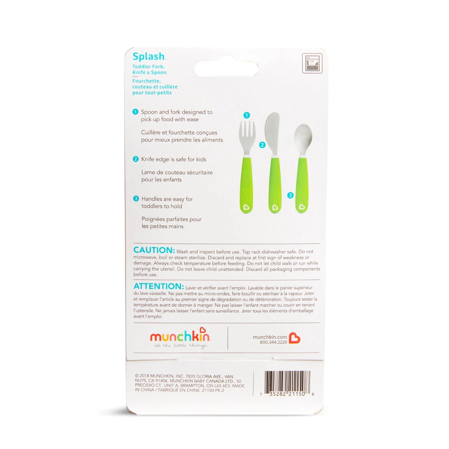 Self-feeding is a multifaceted milestone. Once they feel comfortable enough to eat on their own, they need to master using utensils, too! Nudge them in the right direction with Splash™ toddler flatware. Designed especially for little mouths and hands, this fork, knife and spoon set brings self-feeding up a notch with comfy, easy-to-grip handles and an array of fun colors to choose from. Toddlers will love eating like grown-ups at the dinner table, and because these kid-friendly utensils were created with their safety and size in mind, they’ll embrace independent eating with ease. Hooray for that!