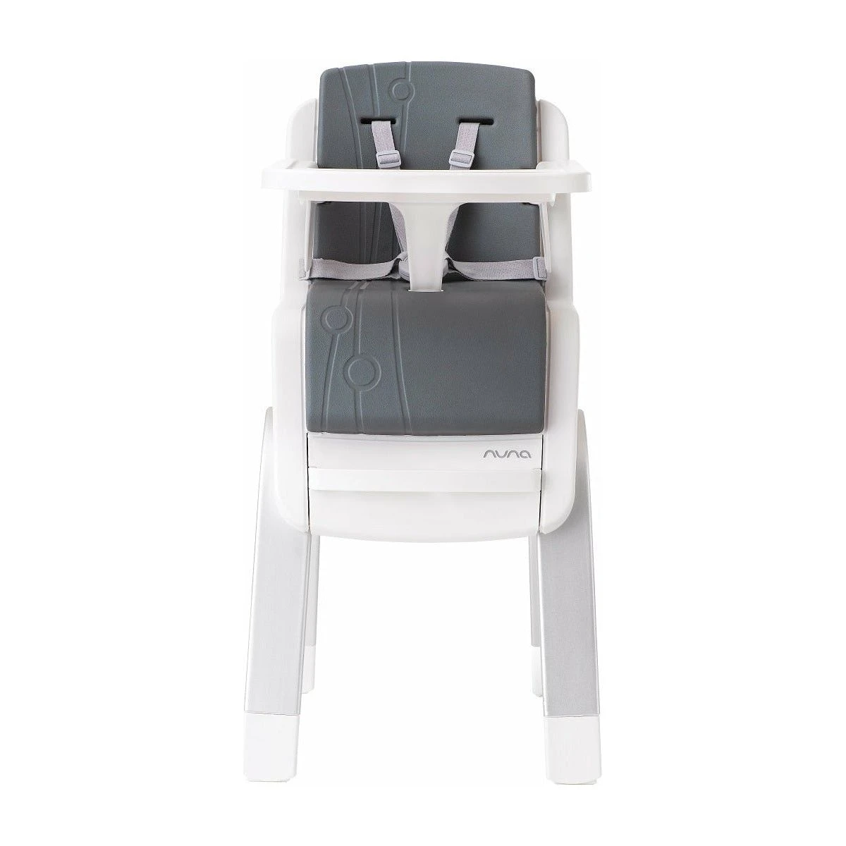 Is it a designer chair, or one destined for daily juice-box battles? The Nuna ZAAZ masters both, beautifully. Built from the ground up with clever and practical design, our innovative high chair grows with your baby for years of chic yet sturdy mealtimes. The ZAAZ is exceedingly safety tested, comfortable, customizes to any size and matches your pre-baby lifestyle. Features: 1. Customize the ZAAZ to any size, height or amount of wiggles. 2. Hidden lift mechanism adjusts height easily and lets baby join in at the table. 3. Unique air foam cushion fits each chair and pads both small and bigger bottoms. 4. No-crevice design outwits crumbs and cleans up like a dream. 5. Removable plastic components are dishwasher safe. 6. Made of high quality materials and is bpa, pvc and dehp free.