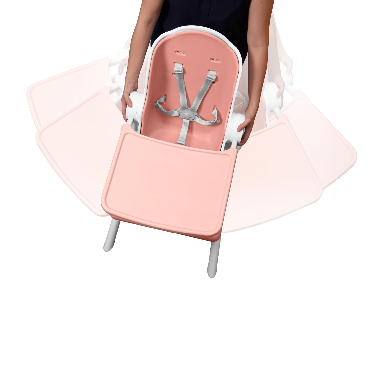 The tray that attaches effortlessly to the chair is dishwasher-safe. It’s generously sized so toy cars can race easily around the cereal bowl as your child eats.