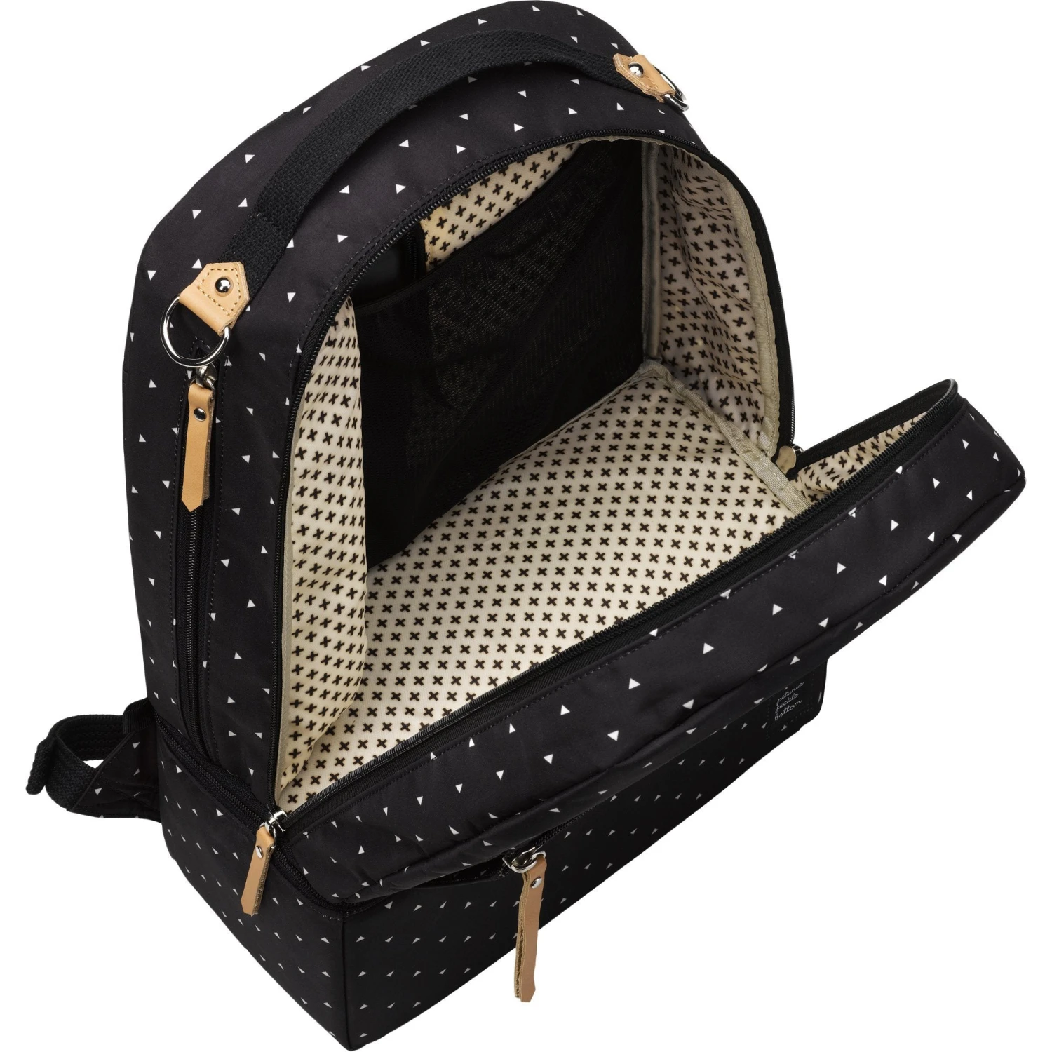 - 1 exterior front zippered pocket