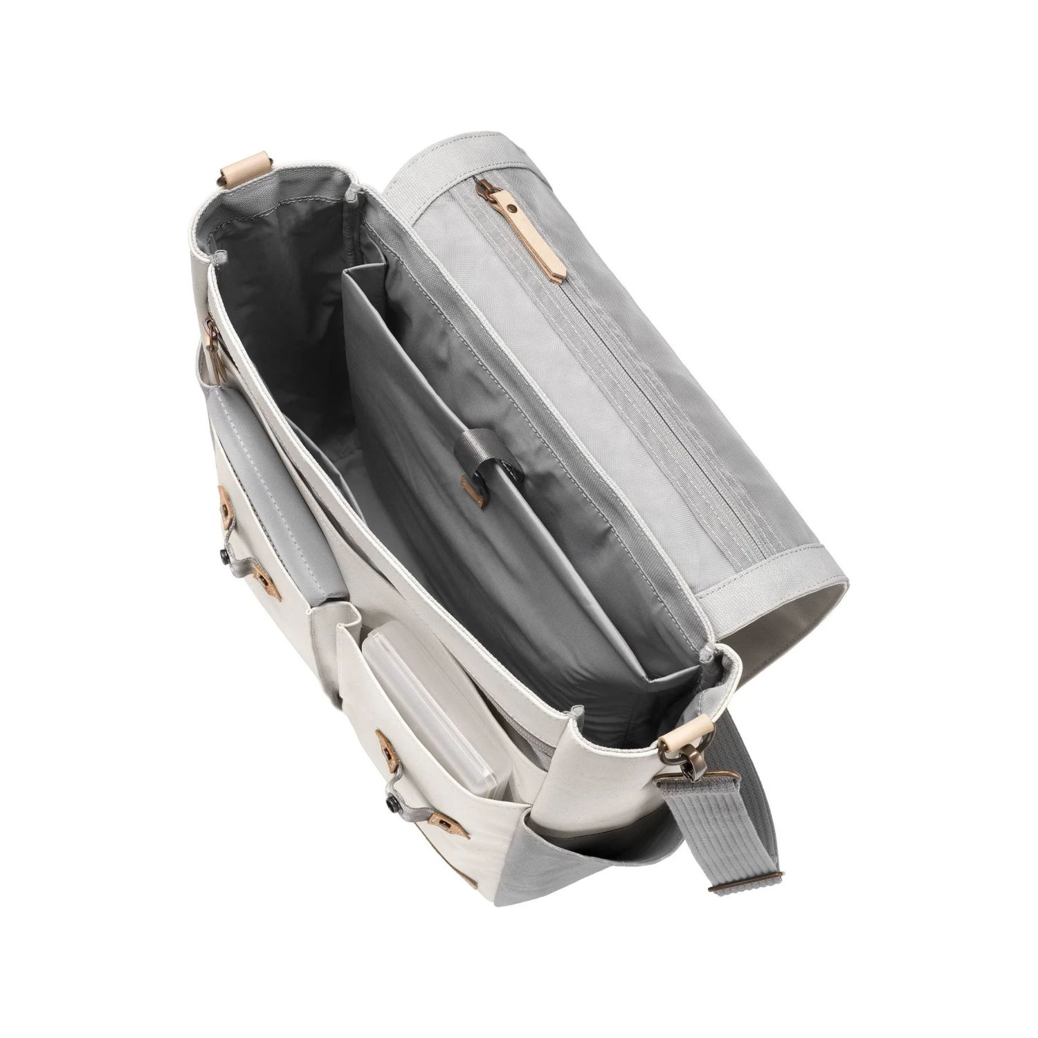 With a minimalist look, the versatile Pathway Pack is perfect for both moms and dads. This modern-parenting must-have easily travels from the office to the playground with a glazed, easy-to-clean exterior, a spacious, well-organized interior, a laptop pocket, removable changing pad and cross-body and backpack carrying options.