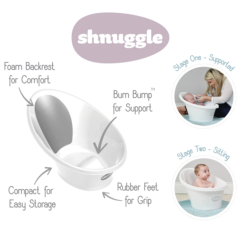 The multi-award winning Shnuggle Bath is designed to make bathtime less stressful for parents and fun for baby. Suitable from newborn, the clever bum bump helps support even the tiniest baby right up to 12 months plus.