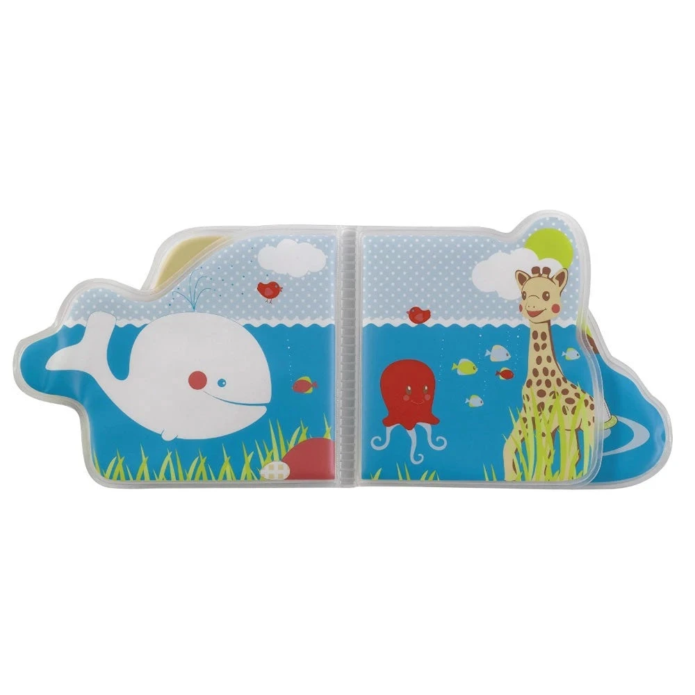 To make bath time a fun time, an 8-page book to discover Sophie la girafe and Margot the Turtle enjoying the water. Fun and colourful, it encourages baby to invent lots of stories. Made of EVA, it is easy to clean and hygienic.